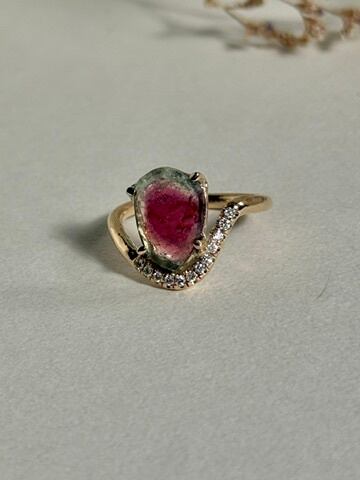 メレダイヤモンド × バイカラートルマリン K10YG リング|RUKUS