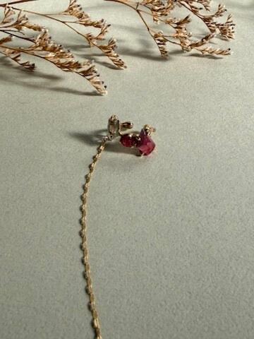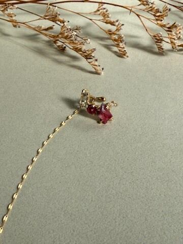 ルビー、ムーンストーン、バイカラートルマリン、水晶K10YGイヤーカフ | RUKUS