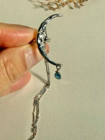 三日月アクアマリン・ブラックルチル・水晶 イヤーカフ|RUKUS