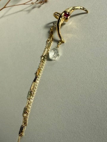 三日月ルビー、水晶イヤーカフ | RUKUS