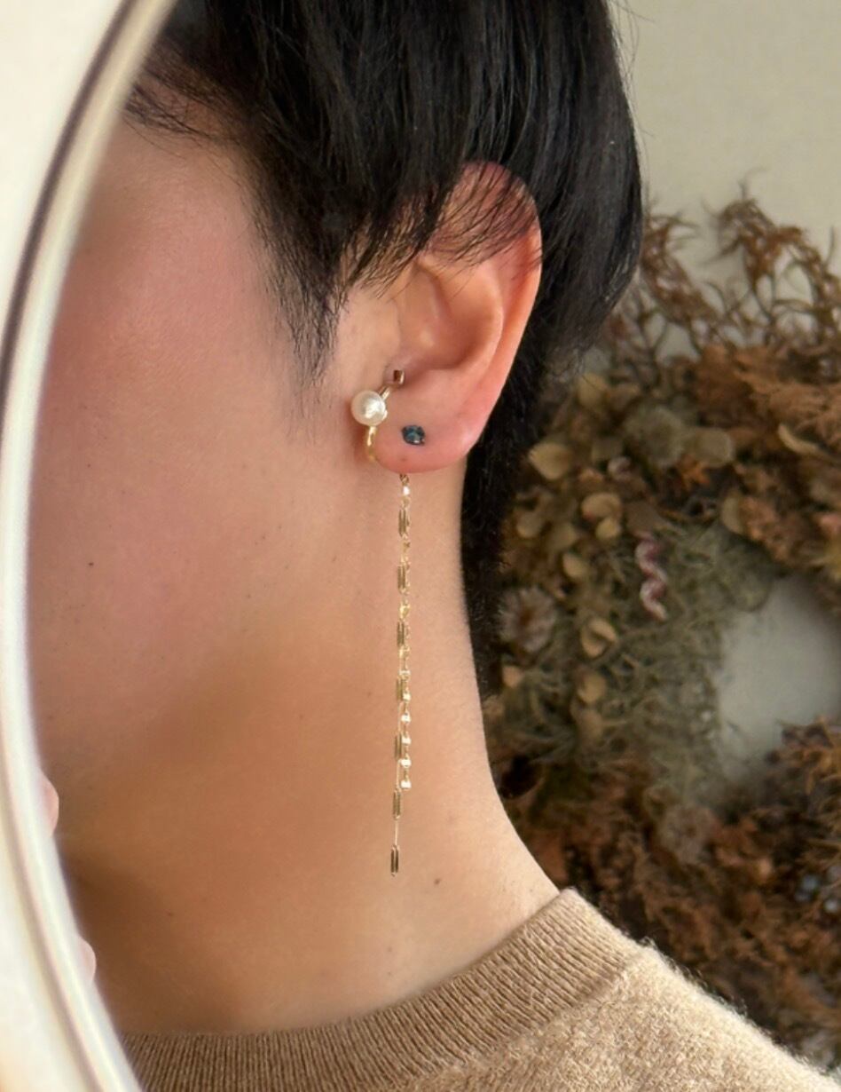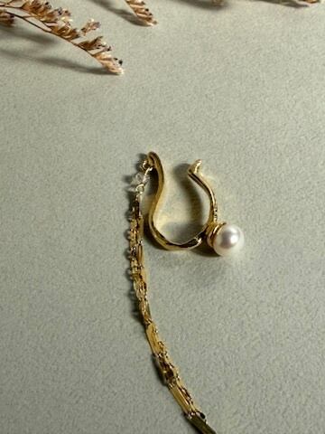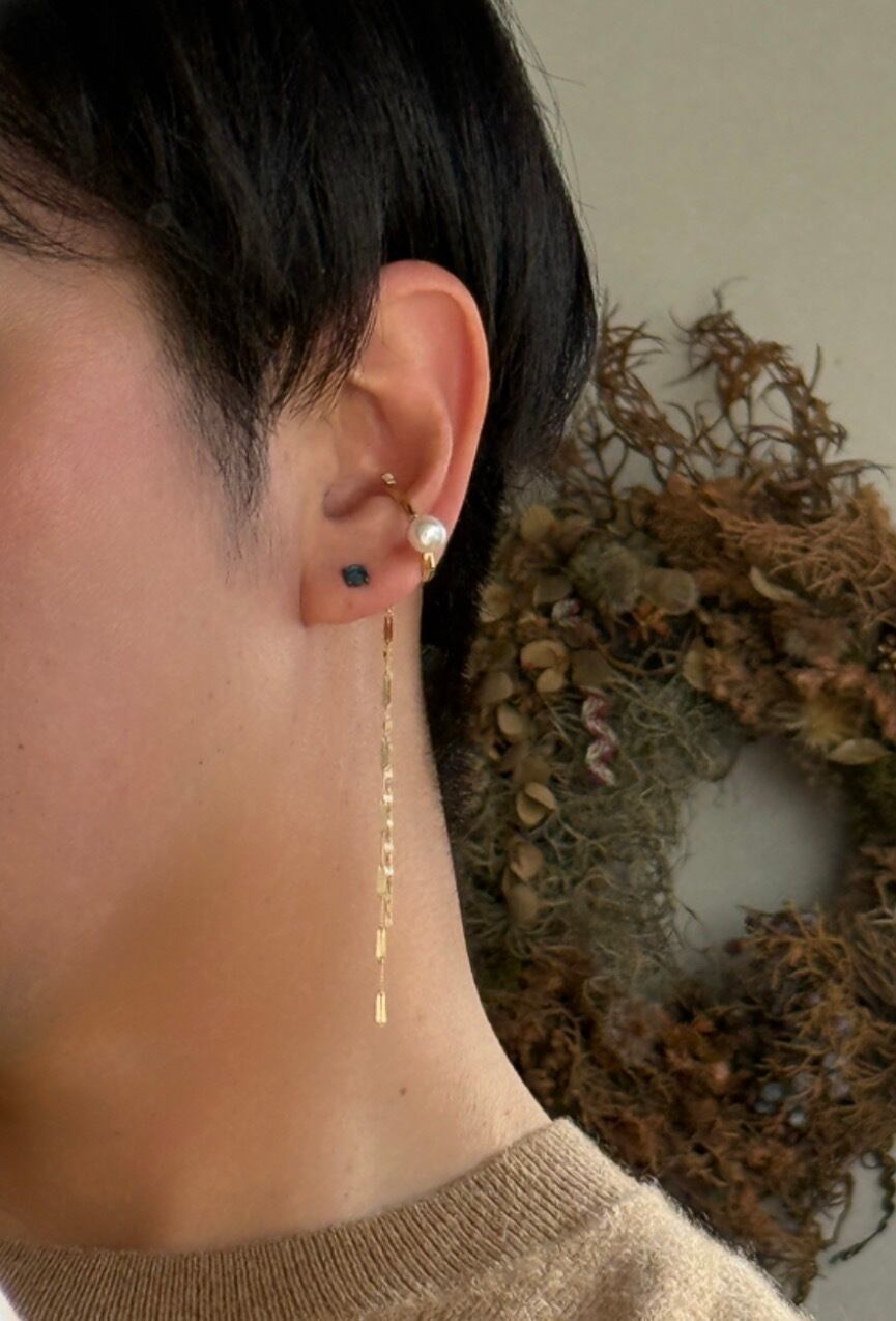 チェーン付き淡水パール・水晶 イヤーカフ|RUKUS